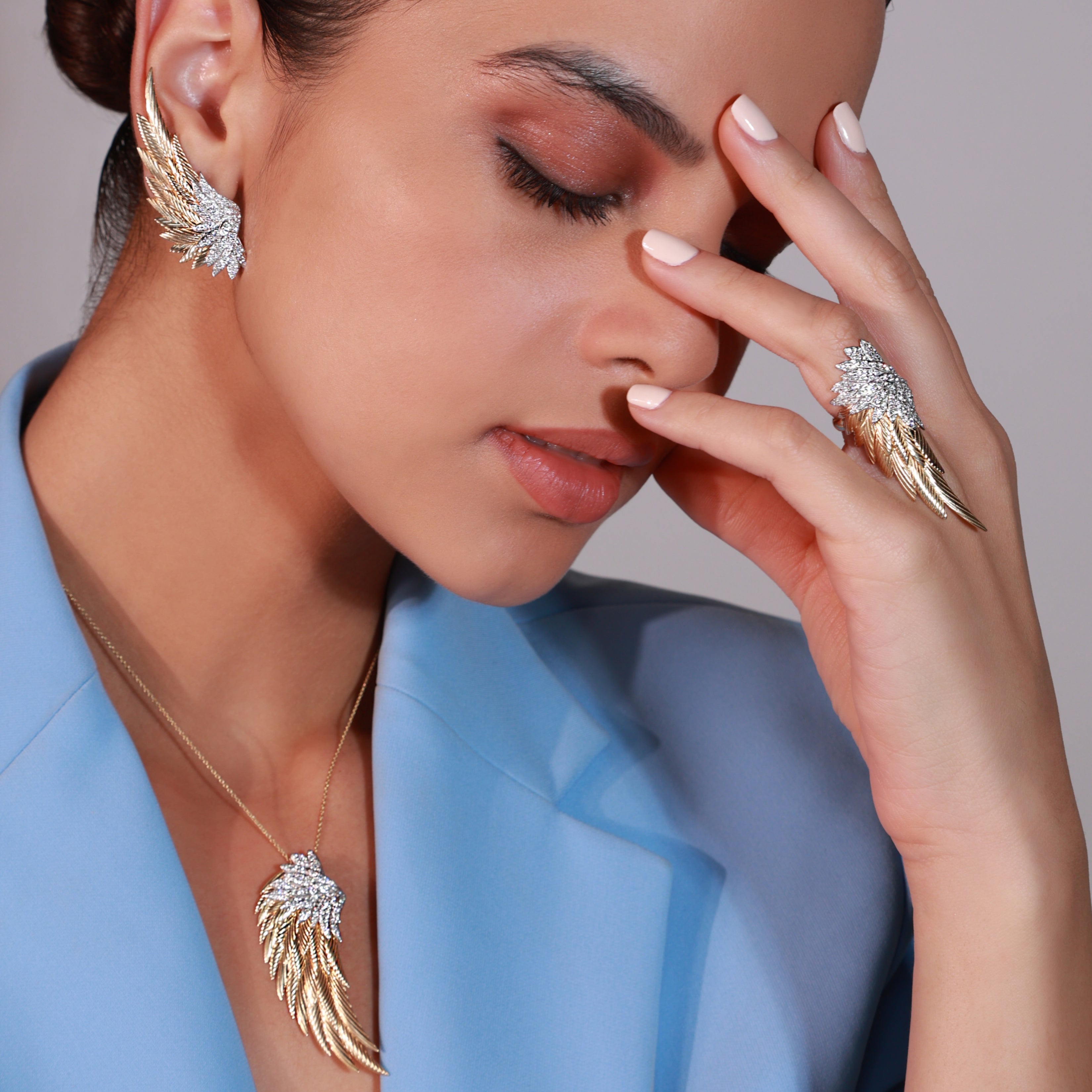 - Gold and Full Cut Diamond Gilded Angel Earrings