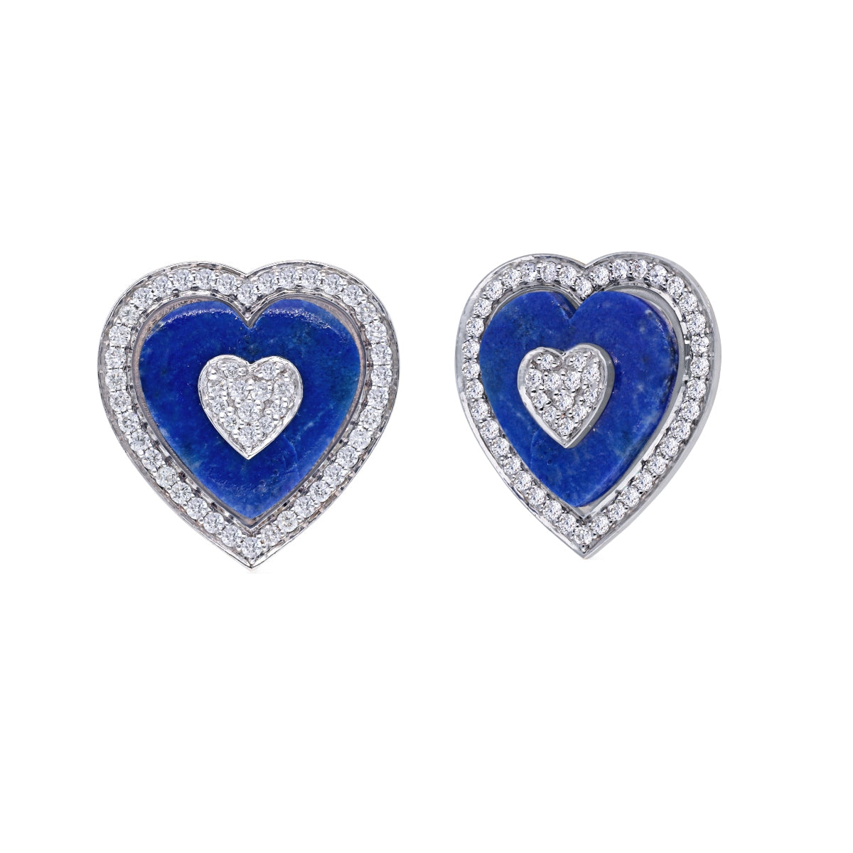 Lapis Diamond Heart Studs
